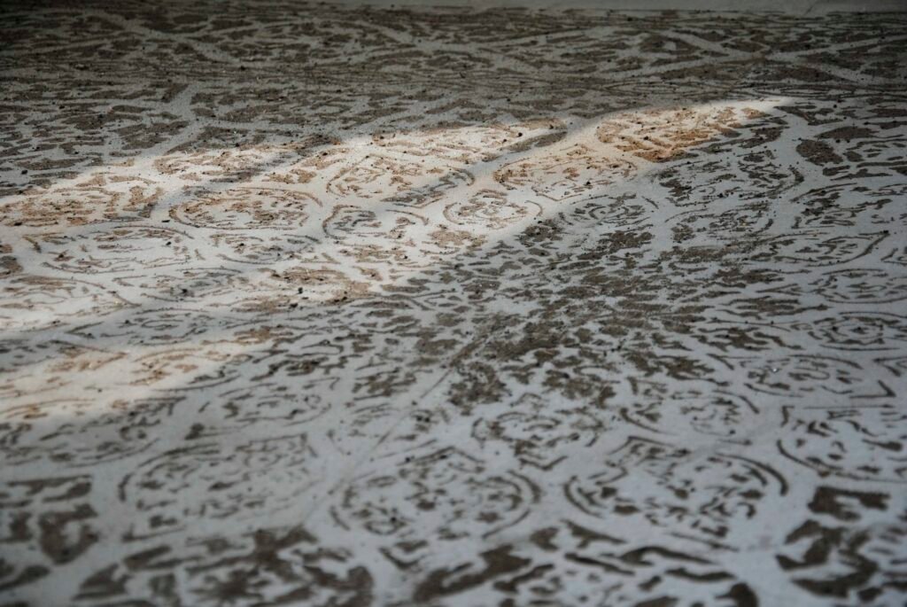Un dessin en poussière reprend la forme symbolique du jardin persan — microcosme où le monde se concentre dans un périmètre sacré. Paraedeza — mot persan à l’origine du mot « paradis » — désigne un espace clos, ordonné, qui contient en miniature l’ordre du monde. La fragilité extrême de ce dessin est en contraste direct avec la puissance de l’information contenue dans chaque grain : la poussière s’organise en structure complexe, comme la matière cosmique qui, par la seule force de son organisation, forme des étoiles, des planètes, des êtres conscients. Nous sommes nous-mêmes de la poussière cosmique organisée en conscience. Chaque souffle peut l’effacer — et c’est précisément ce qui en fait un cosmos vivant.